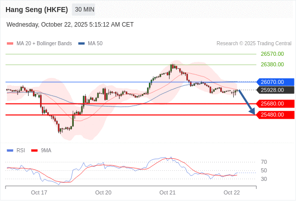 交易策略: 在 26070.00 之下,看跌,目标价位为 25680.00 ,然后为 25480.00 。