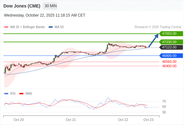 在 46800.00 之上,看涨,目标价位为 47330.00 ,然后为 47650.00 。
