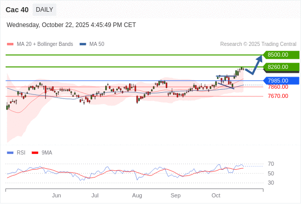 Cac 40 短线: 上升趋势。