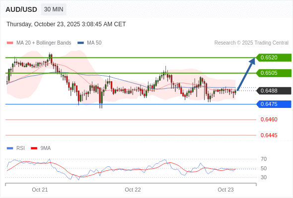 在 0.6475 之上,看涨,目标价位为 0.6505 ,然后为 0.6520 。
