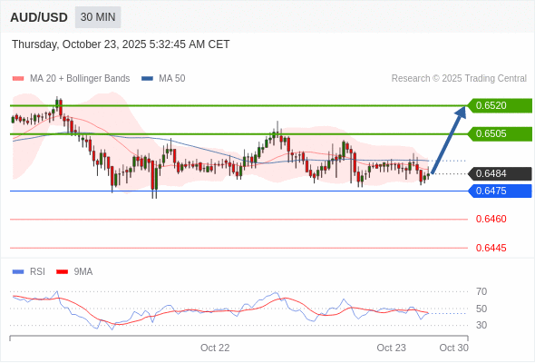 在 0.6475 之上,看涨,目标价位为 0.6505 ,然后为 0.6520 。