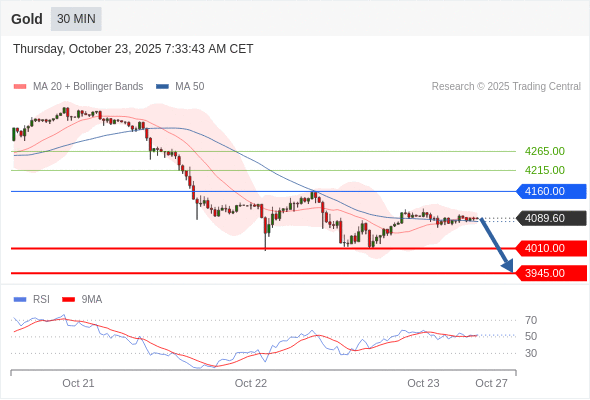 黄金现货 当日内: 短期关键阻力位在4160.00。