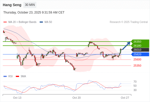 在 25820 之上,看涨,目标价位为 26180 ,然后为 26350 。