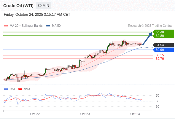 在 60.90 之上,看涨,目标价位为 62.80 ,然后为 63.30 。