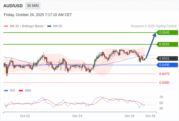 在 0.6490 之上,看涨,目标价位为 0.6525 ,然后为 0.6545 。