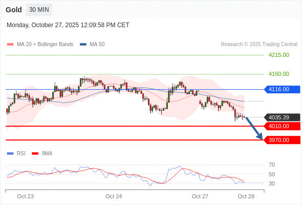 交易策略: 在 4116.00 之下,看跌,目标价位为 4010.00 ,然后为 3970.00 。