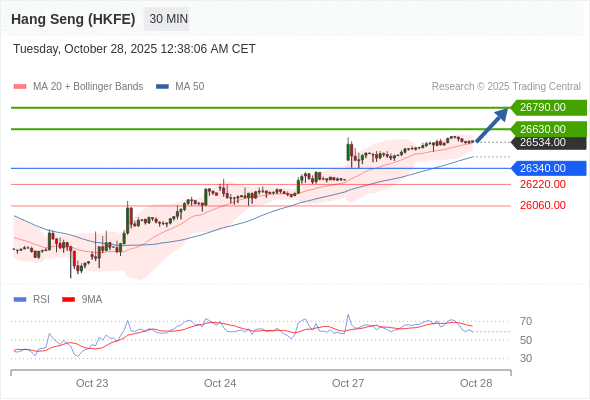 在 26340.00 之上,看涨,目标价位为 26630.00 ,然后为 26790.00 。