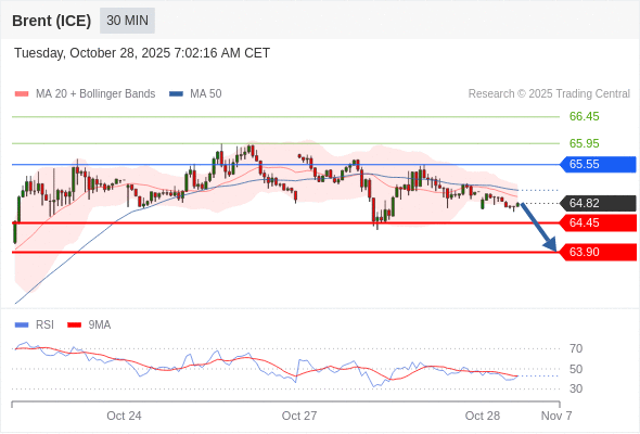 在 65.55 之下,看跌,目标价位为 64.45 ,然后为 63.90 。