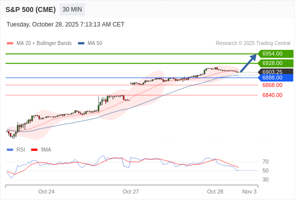 在 6888.00 之上,看涨,目标价位为 6928.00 ,然后为 6954.00 。