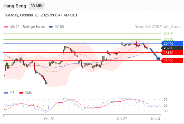 恒生指数 当日内: 目标位为25900。