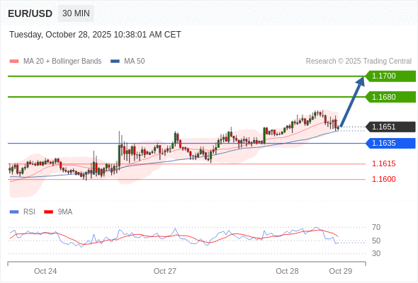 在 1.1635 之上,看涨,目标价位为 1.1680 ,然后为 1.1700 。