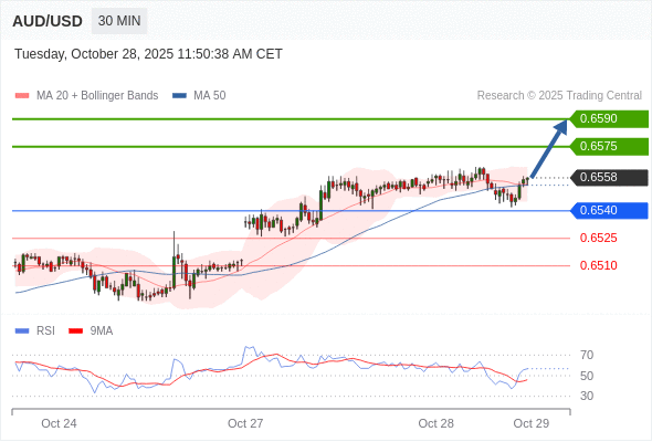 在 0.6540 之上,看涨,目标价位为 0.6575 ,然后为 0.6590 。