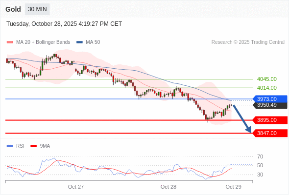 黄金现货 当日内: 短期关键阻力位在3973.00。