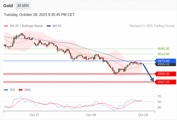 在 3973.00 之下,看跌,目标价位为 3895.00 ,然后为 3847.00 。