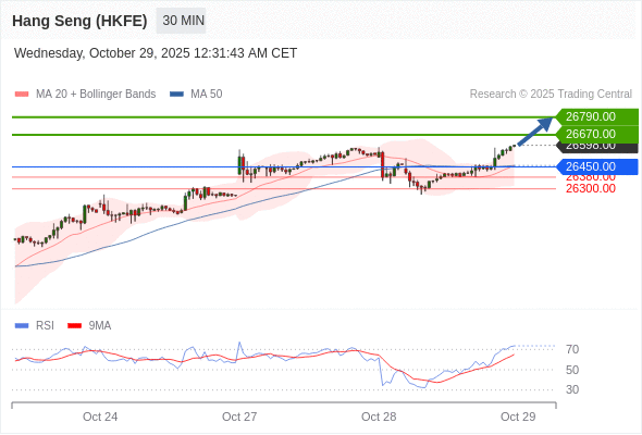 交易策略: 在 26450.00 之上,看涨,目标价位为 26670.00 ,然后为 26790.00 。
