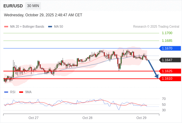 交易策略: 在 1.1670 之下,看跌,目标价位为 1.1625 ,然后为 1.1610 。
