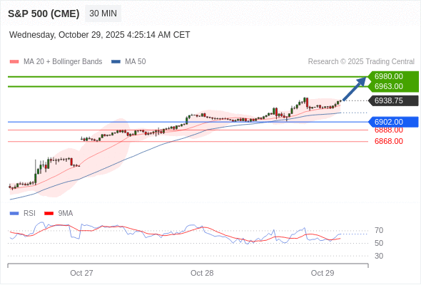交易策略: 在 6902.00 之上,看涨,目标价位为 6963.00 ,然后为 6980.00 。