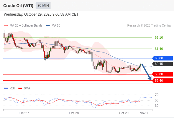 在 60.80 之下,看跌,目标价位为 59.80 ,然后为 59.40 。