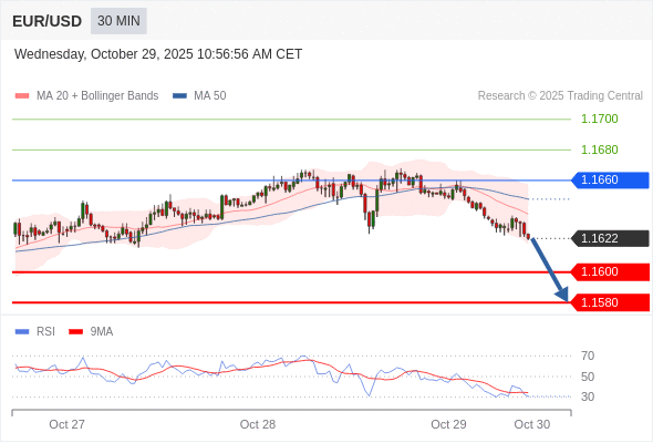 交易策略: 在 1.1660 之下,看跌,目标价位为 1.1600 ,然后为 1.1580 。
