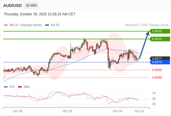 在 0.6570 之上,看涨,目标价位为 0.6615 ,然后为 0.6630 。