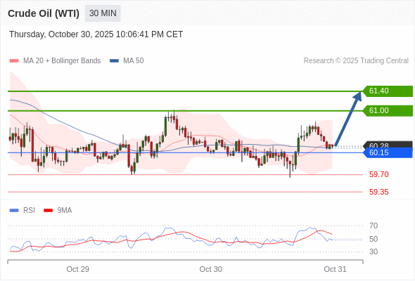 交易策略: 在 60.15 之上,看涨,目标价位为 61.00 ,然后为 61.40 。