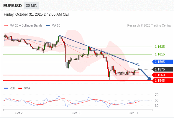 交易策略: 在 1.1595 之下,看跌,目标价位为 1.1560 ,然后为 1.1545 。
