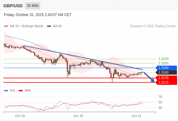 在 1.3180 之下,看跌,目标价位为 1.3135 ,然后为 1.3115 。
