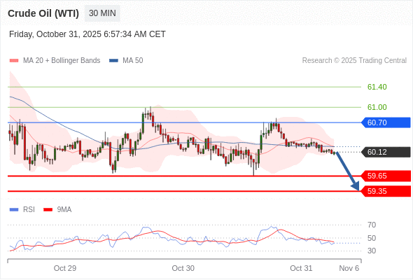 在 60.70 之下,看跌,目标价位为 59.65 ,然后为 59.35 。