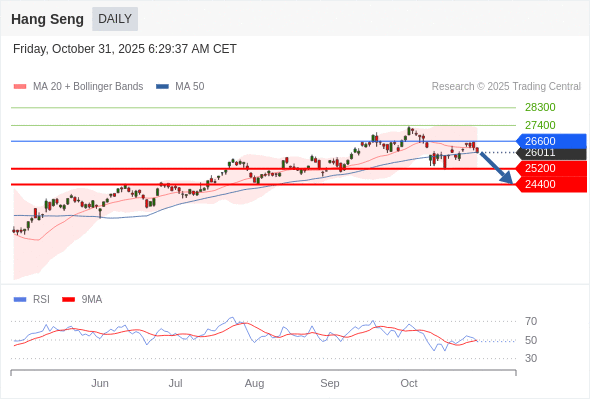 恒生指数 短线: 短期关键阻力位在26600。