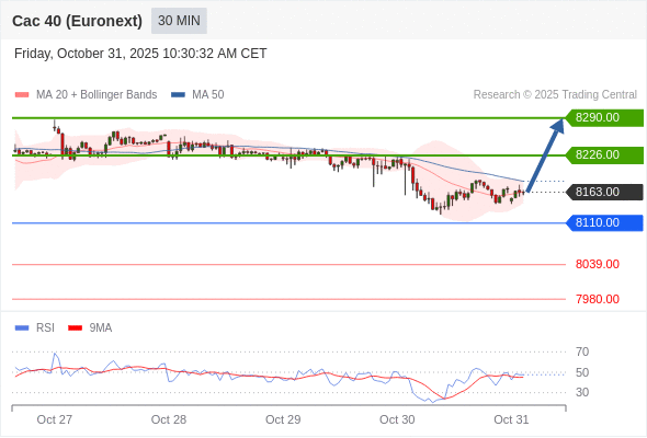 法国CAC指数期货 (Euronext) (X5) 当日内: 超短线(当日内)支撑位在8110.00附近。