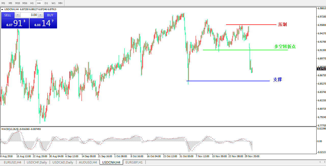 备选策略: 在6.9089之上,看涨,目标价位为6.9580,然后为6.9688。