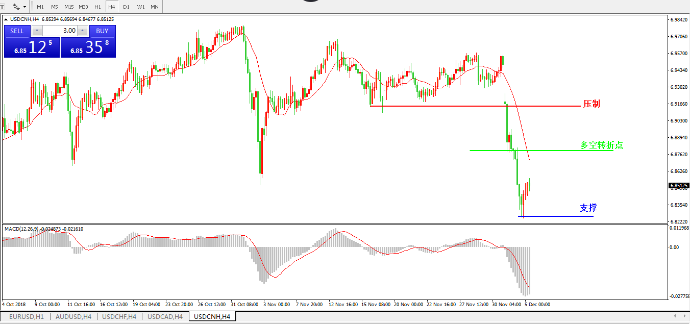 备选策略: 在6.8780之上,看涨,目标价位为6.9106,然后为6.9300。