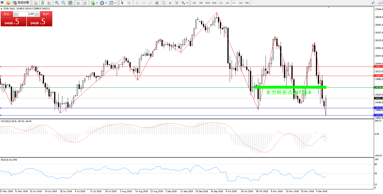 技术点评:迹象维持宽幅震荡走势,MACD处于0轴下方移动,RSI指标50均衡线下方空头区域有转势上行迹象;