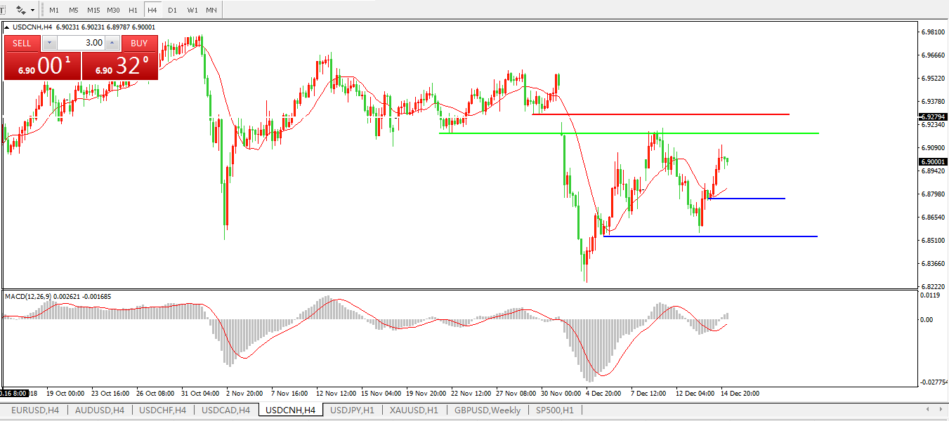 备选策略: 在6.9200之上,看涨,目标价位为6.9300,然后为6.9557。