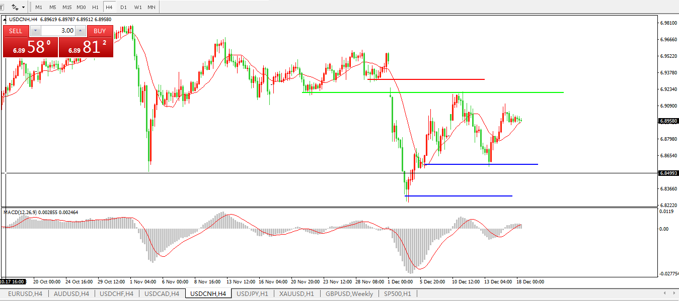 备选策略: 在6.9200之上,看涨,目标价位为6.9300,然后为6.9557。