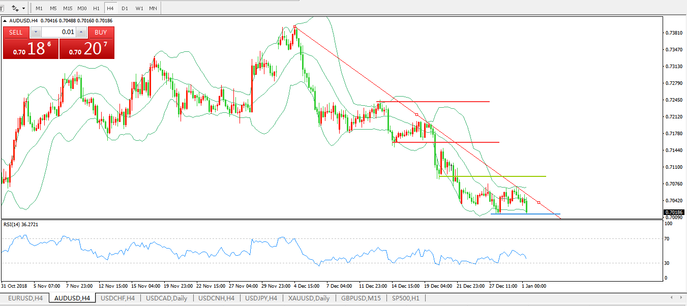 交易策略:在0.7090之下,看跌,目标价位为0.7000,然后为0.6950。