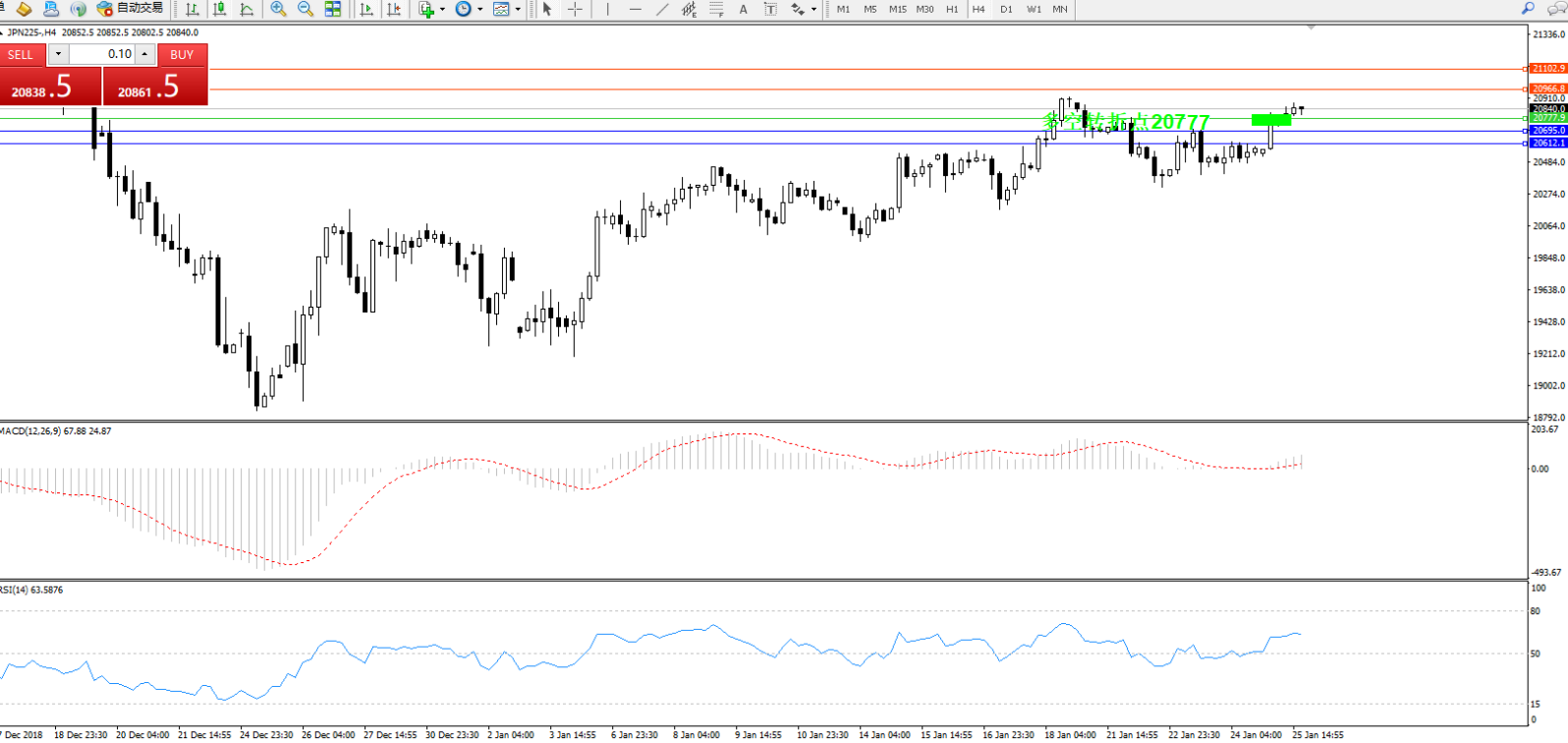 日本股市在星期五收高,其中机械、电气设备和玻璃等上涨的板块带领股指走高。日本东京收盘时,日经225指数上涨0.97%,创近一月新高。指数触及五周高位,芯片类股追随美国同业的大幅涨势,一些投资者等候下周重要事件寻找指引,美国和中国距离解决贸易问题还有很长的路要走,双方不太可能在下周的谈判中解决所有争端。