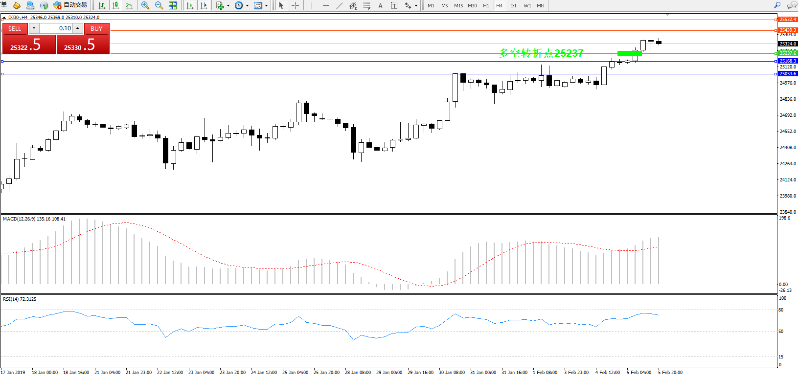 道琼斯工业平均指数收涨172.15点,涨幅0.68%,报25411.52点。备受期待的美国总统特朗普发表国情咨文讲话之前,多家企业发布了强劲的财报,使投资者更加乐观。奢侈品时尚公司Ralph Lauren RL.N 也公布了好于预期的营收和获利,推动其股价上涨8.4%。谷歌母公司Alphabet GOOGL.O 扭转跌势,收盘上涨0.9%。该公司的业绩超出预期,但其股价在盘中稍早因支出大幅增加而下滑。对边界墙资金争端有望得到持久解决的乐观情绪也提振了美股,Wilmington Trust首席投资长Tony Roth表示。