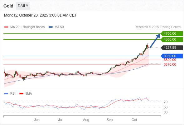 在 3950.00 之上,看涨,目标价位为 4500.00 ,然后为 4700.00 。
