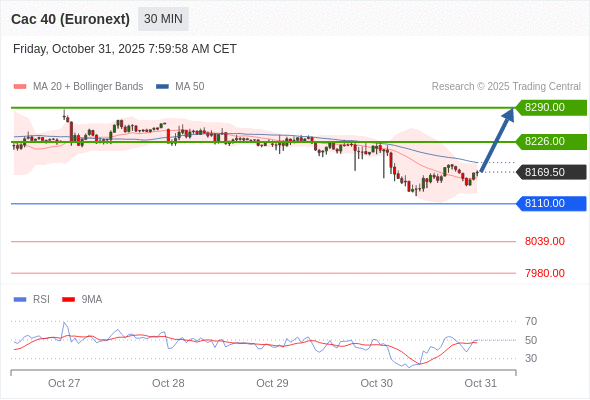 在 8110.00 之上,看涨,目标价位为 8226.00 ,然后为 8290.00 。