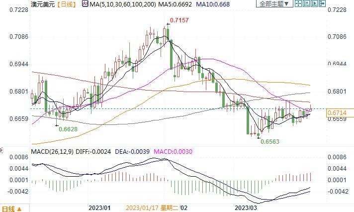 北京时间3月31日15:15,澳元兑美元报0.6713/14