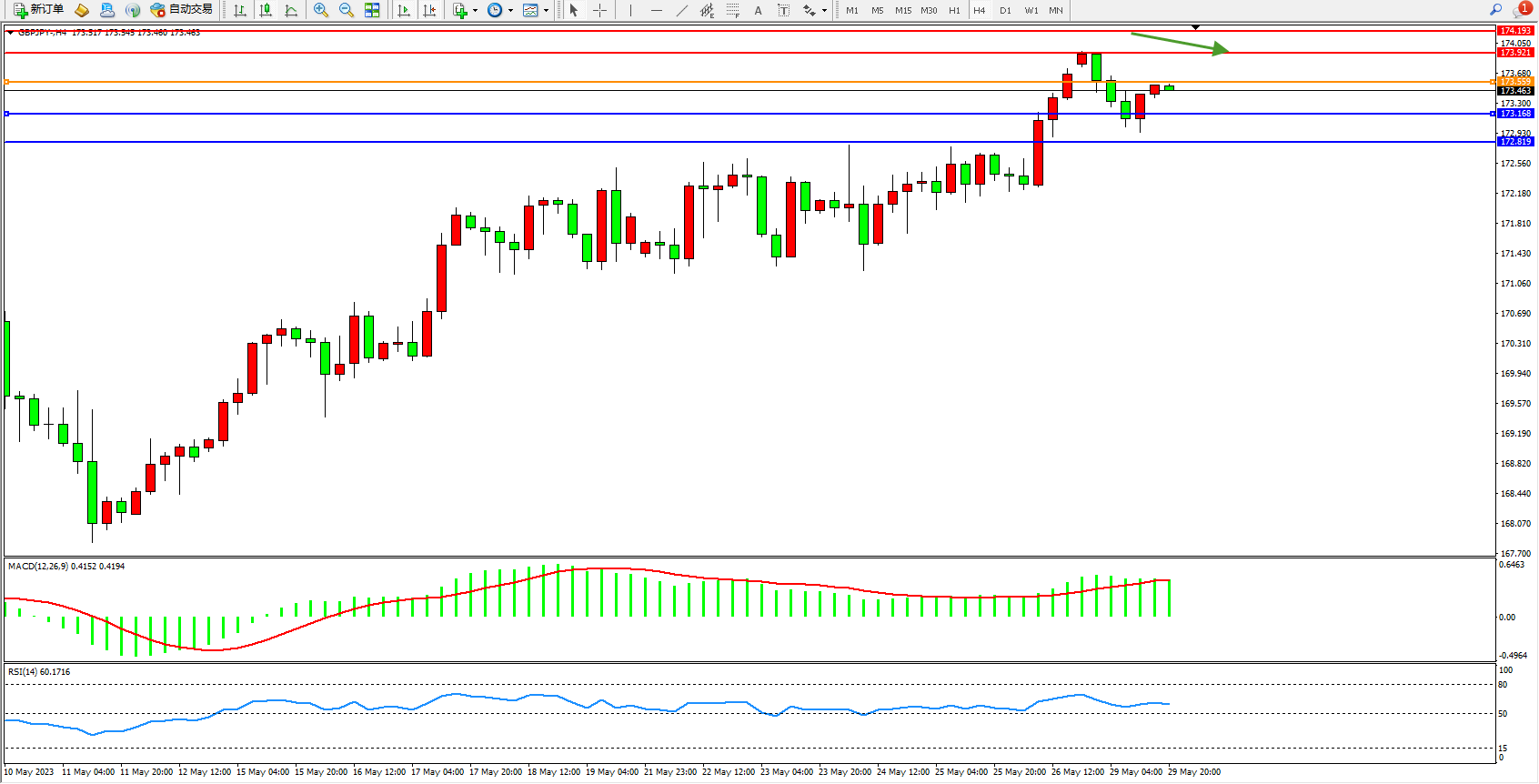 阻力位:173.921 174.193