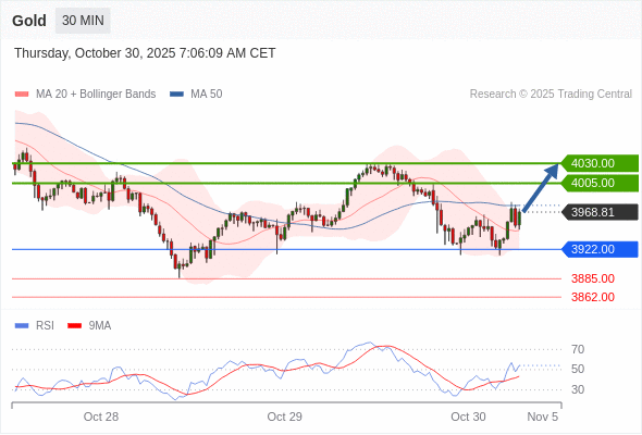 在 3922.00 之上,看涨,目标价位为 4005.00 ,然后为 4030.00 。